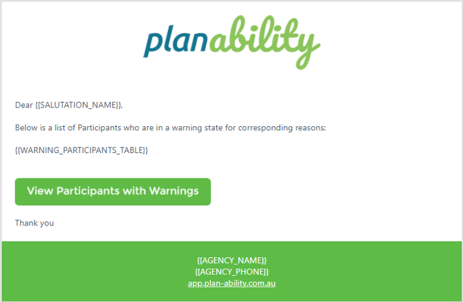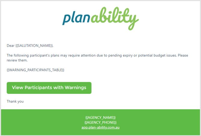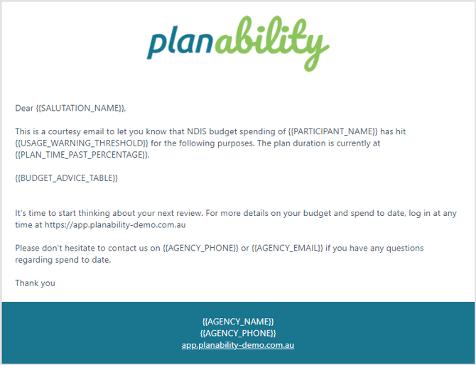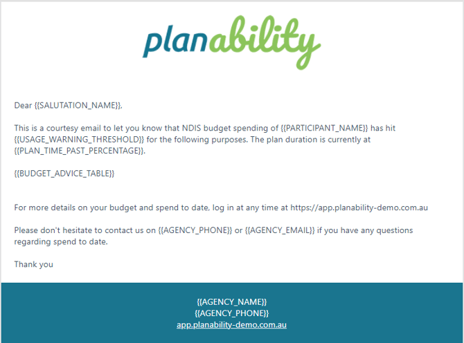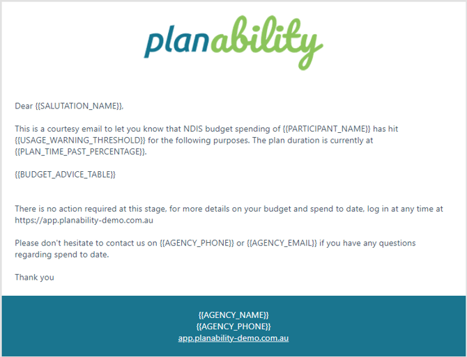 Trigger: A warning is sent when Budget usage exceeds the Agency-set thresholds.