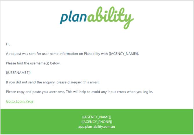 Trigger: Triggered when a User has forgotten their Username and uses the 'forgot Username' link on the login page.