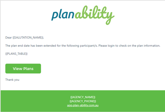 Trigger: Triggered when a plan end date is extended in NDIS. Emails are generated at 6am