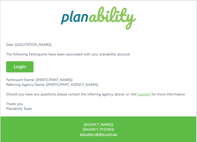 Recipients: Nominated Contact (Participant, Carer, Support Coordinator, Contact)