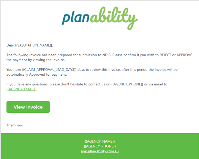 Recipients: Nominated Approver (Participant, Carer, Support Coordinator, Contact)