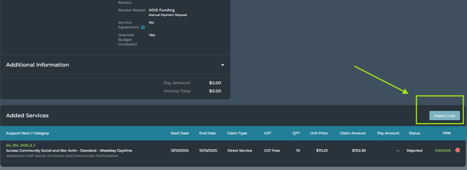 Use the rejected PRN to submit a Manual Payment Request with the NDIS. The PRN can be found on the claim line.