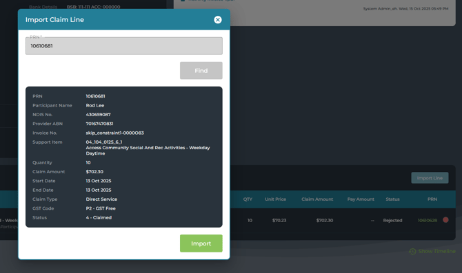 - From the Claim Details page, click Import Line in Added Services