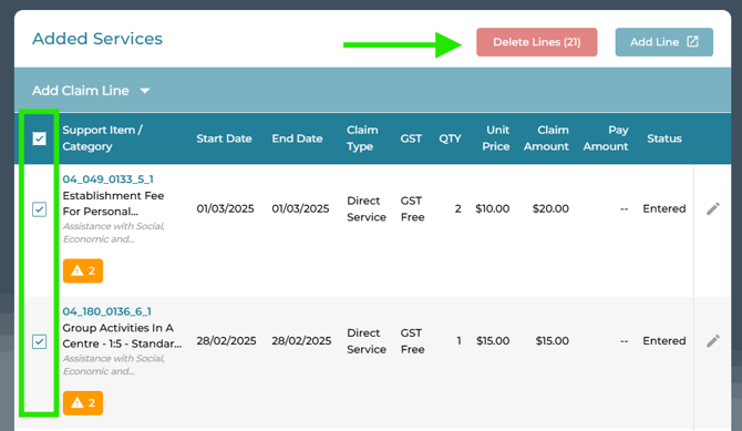 Delete multiple lines from Edit Claim