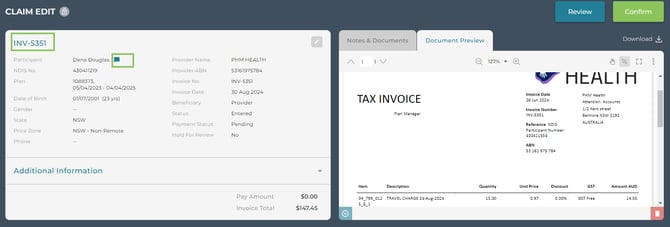 Claims should be reviewed before submitting to the NDIS. All claims that have been created by scanning, bulk import mailbox ingestion and csv import will be held in Claims for Review for checking.