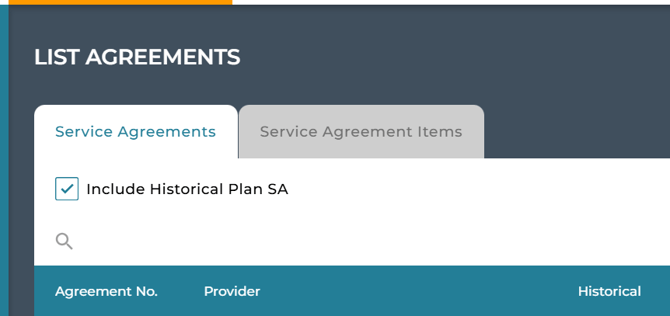 To view Service Agreements from a historical period of a PACE Plan, simply check the box labeled Include Historical Plan SA.