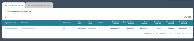 All Service Agreements associated with the selected Plan or PACE Plan Period will be displayed, including those for Historical PACE plans if that option is chosen.